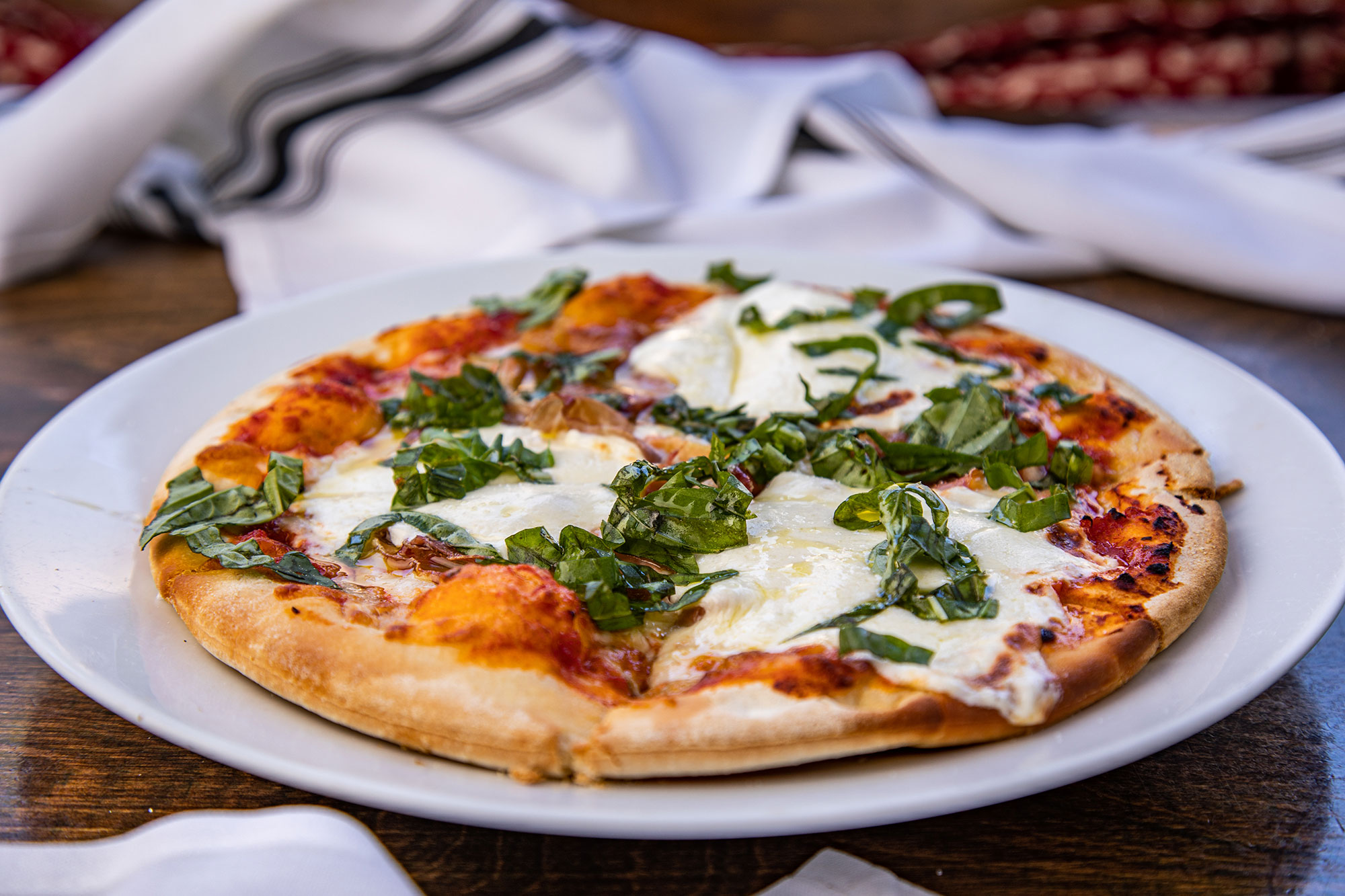 Italian Dry Salami, Caramelized Onion, Fresh Mozzarella, Basil and Olive Oil